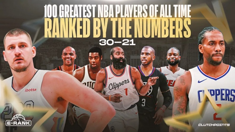9月11日,知名体育媒体Clutch Points依据记者Josh Eberley设计的“E-Rank”算法公式,发布了NBA历史百大球星榜单的第30至21位排名: