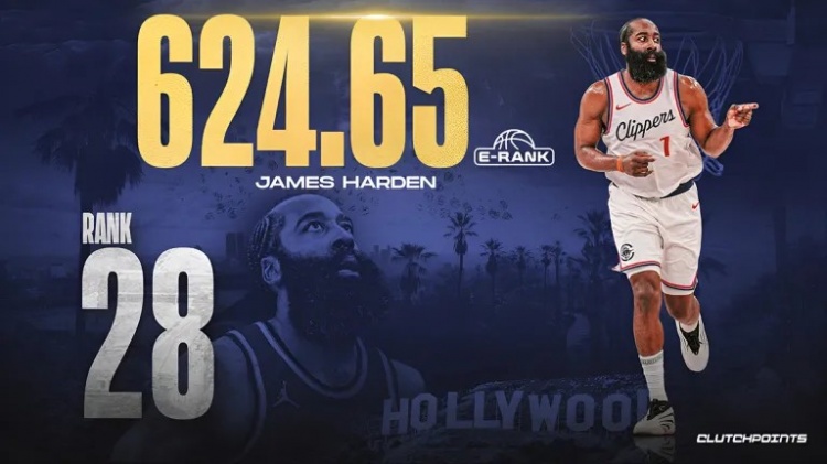 28、詹姆斯·哈登 624.65分(75大巨星)