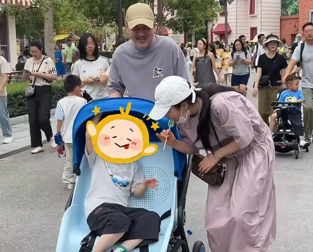 然后就是一家三口在一起的镜头,陈建斌不知道为啥高兴得合不拢嘴,看得出陈建斌对儿子是多么的宠爱,7岁儿子走路走累了,直接用小车推着儿子走,然后老婆在身边陪着,这状态,谁看到不羡慕呀,怪不得陈建斌这么高兴呀。