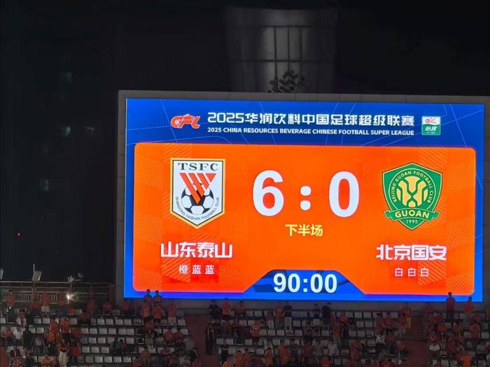 8月31日晚,在2025赛季中超联赛第23轮的一场焦点战中,北京国安队做客济南以0比6不敌山东泰山,被对手终结了三连胜。而这一比分也创下了国安队顶级联赛最大分差失利纪录。